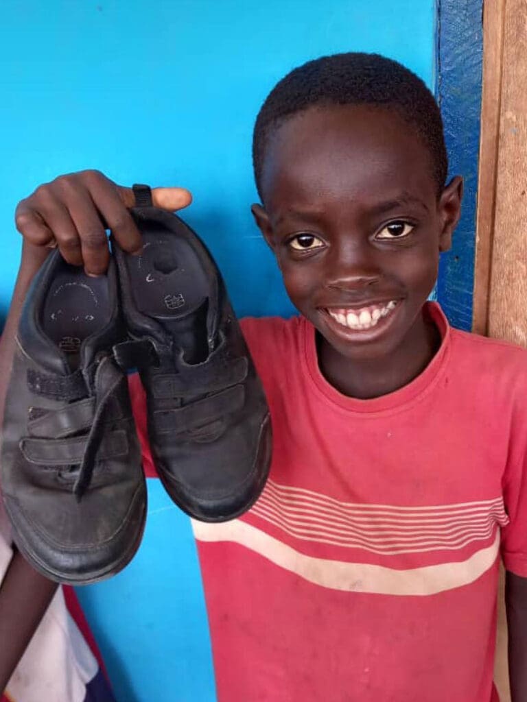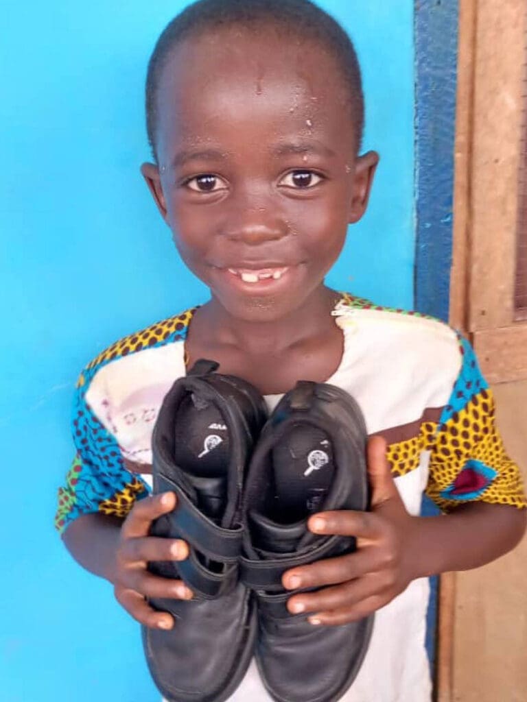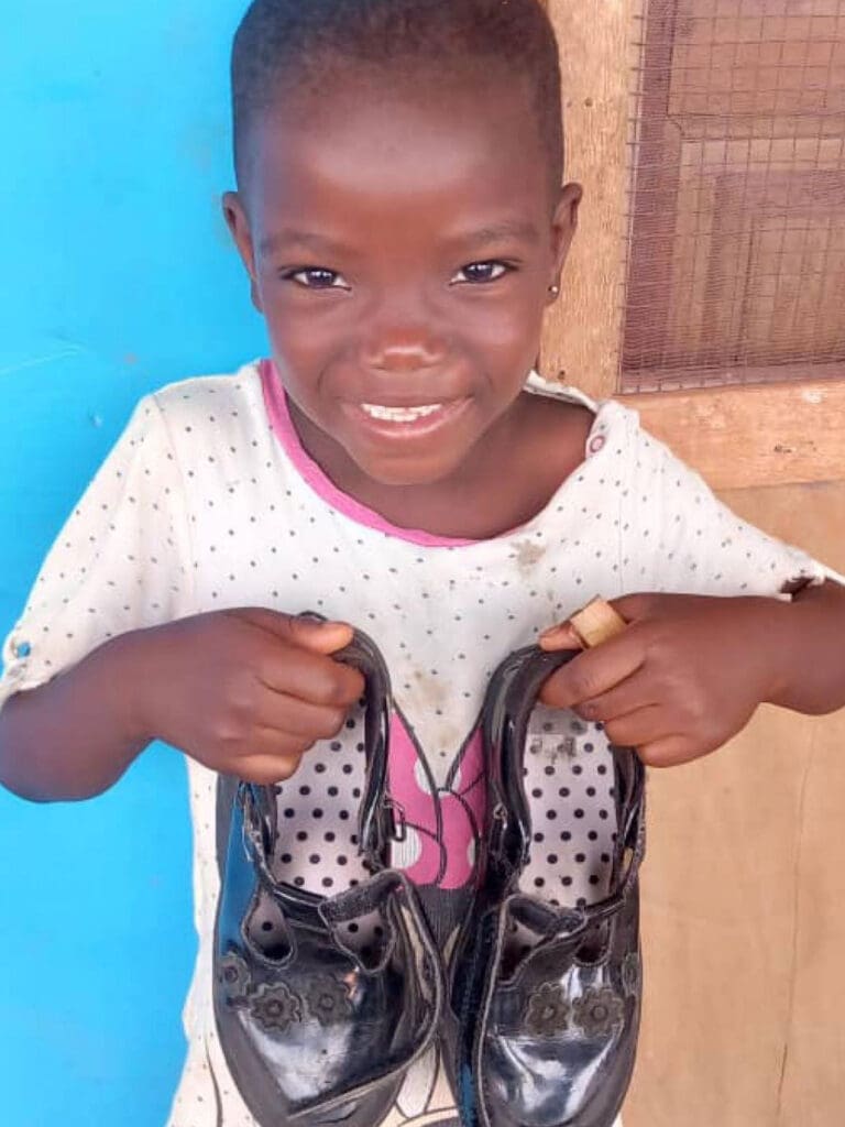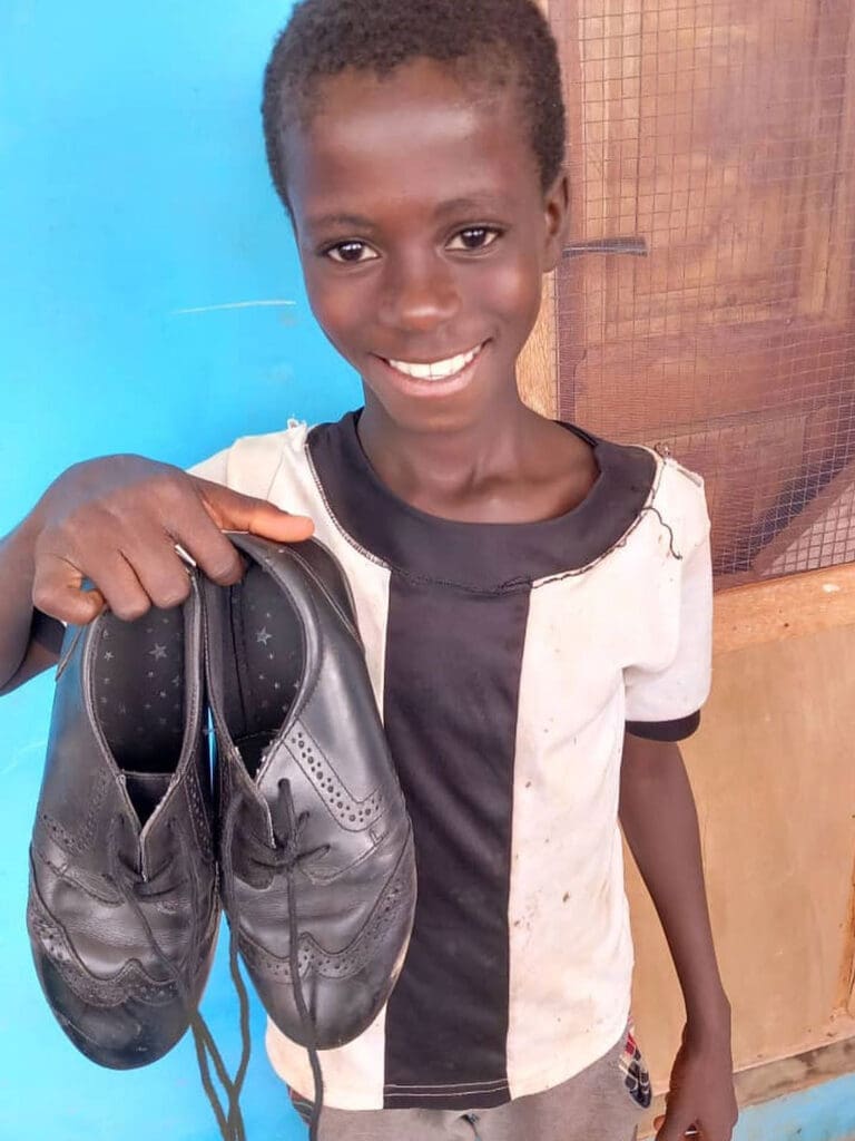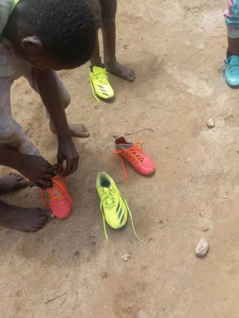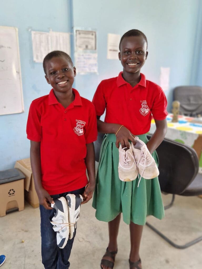 Supported by Akwaaba Volunteers, Future Leaders provide all their pupils with books, uniforms, Sal’s Shoes, transport to and from school and two meals each day so that no child goes hungry. After a successful day of trying on and fitting items in the classrooms, this sports kit will be back on the sports pitches where it belongs next week.”
