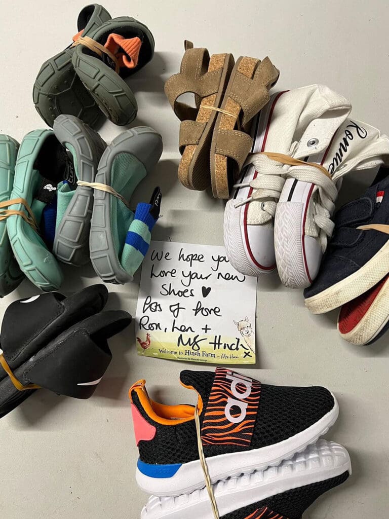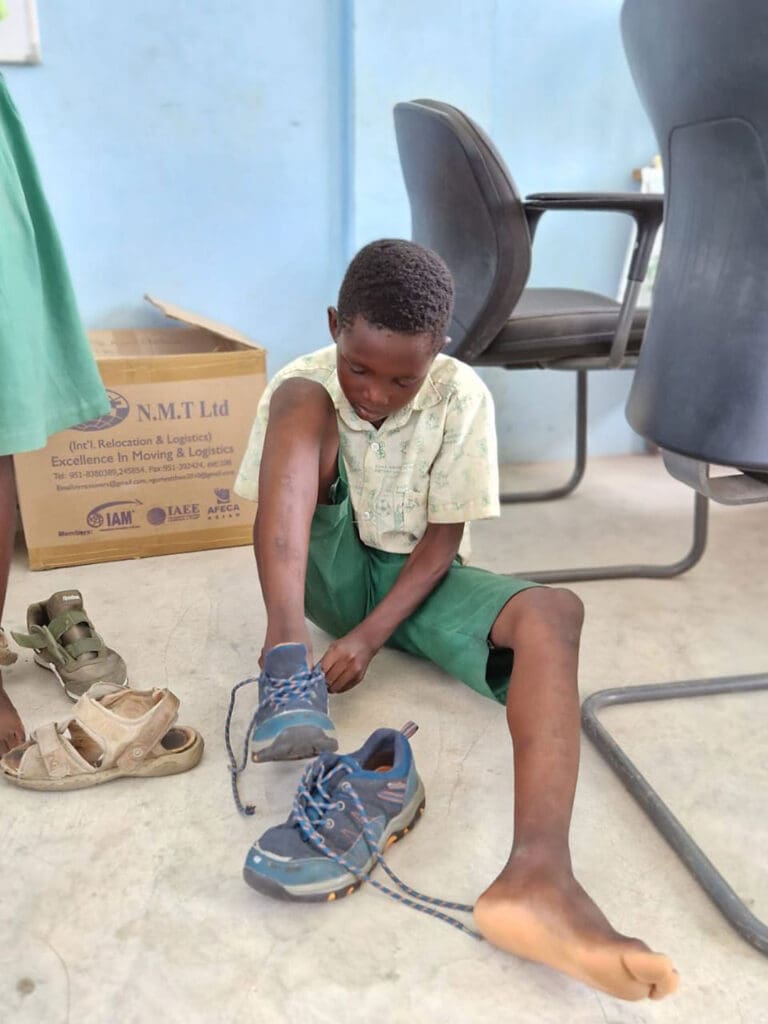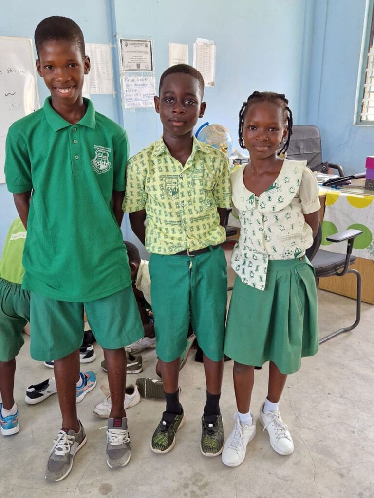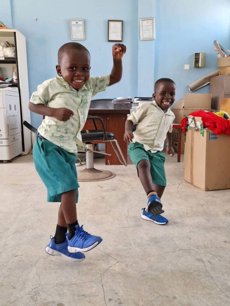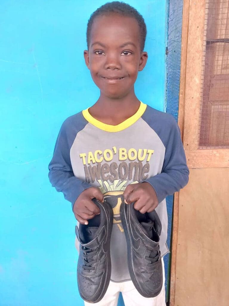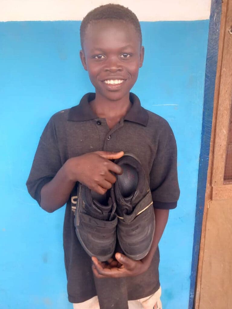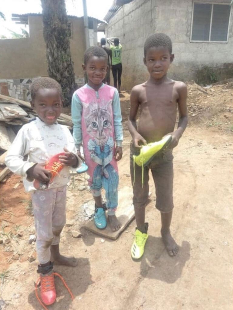Supported by Akwaaba Volunteers, Future Leaders provide all their pupils with books, uniforms, Sal’s Shoes, transport to and from school and two meals each day so that no child goes hungry. After a successful day of trying on and fitting items in the classrooms, this sports kit will be back on the sports pitches where it belongs next week.”